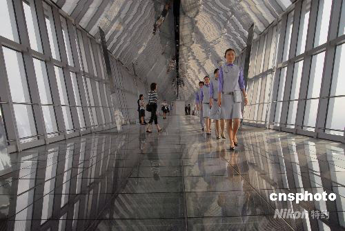 2008年8月28日,上海陸家嘴金融貿易區超高層綜合大廈“上海環球金融中心”落成啟用。金融中心樓坐擁101層高492米,在CTBUH(國際高層建筑與城市住宅協會)2008年公布的高層建筑排行榜的“最高使用樓層高度”和“最高樓頂高度”兩項中位居全球第一。上海環球金融中心擁有先進的辦公設施,有鳥瞰上海面貌的世界最高的觀光廳(地面高度達474米),能夠為國際性會議等活動提供優質服務的多功能會議設施等。上海環球金融中心頂部的觀光廳于8月30日正式對外開放,之后各類設施將逐步啟用。中新社發 海牛 攝