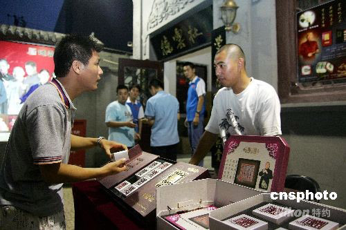 臨近中秋,德云社也做起了副業,賣起了“德云社”月餅。9月4日,在德云社劇場門口,一位工作人員的叫賣聲吸引了路人的目光,印有“德云社”字樣的月餅一字擺開,上面還印有郭德綱身穿大褂、手持扇子說相聲的經典圖像。而每個月餅的外包裝盒上也用紅色的字體勾出“德云社”的字樣。該店負責人介紹,德云社經常推出一些時令小吃,此次月餅也是首次推出。中新社發 富田 攝