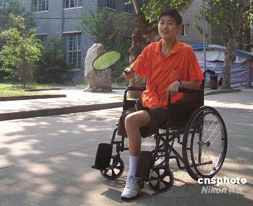 9月5日,受中國殘疾人聯(lián)合會邀請,在四川汶川大地震中受傷的四位少年赴北京參加殘奧會開幕式。圖為4日下午,在華西醫(yī)院地震傷員康復(fù)中心,來自北川中學(xué)的十七歲少年王飛正在打羽毛球。中新社發(fā) 伊西科 攝