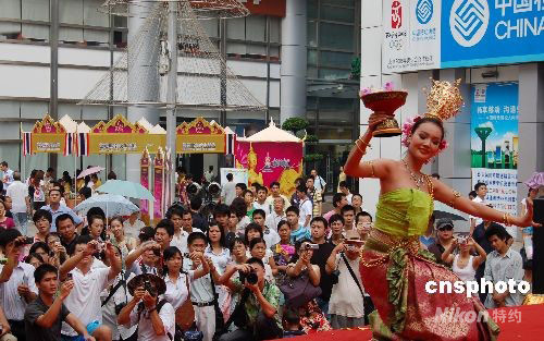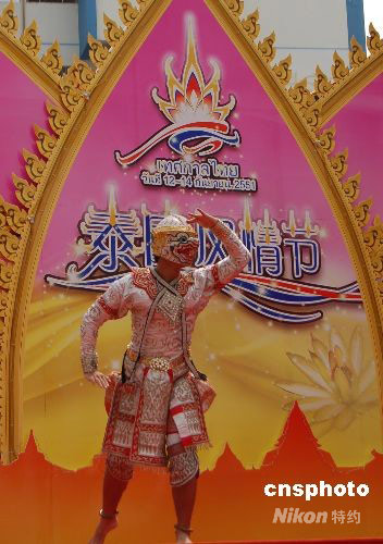 9月12日,由泰國駐南寧總領事館主辦的“2008南寧市泰國風情節”在廣西南寧開幕,泰國演員的表演吸引了大批攝影愛好者和觀眾。本次風情節為期三天,通過文藝表演、商品推介等形式全面推介泰國旅游、美食、手工藝品等。中新社發 劉萬強 攝