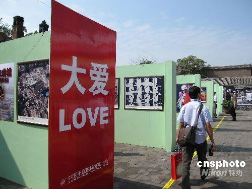 為紀念四川大地震,攝影展專設(shè)了特別展區(qū)展出了抗震救災的諸多感人的照片。