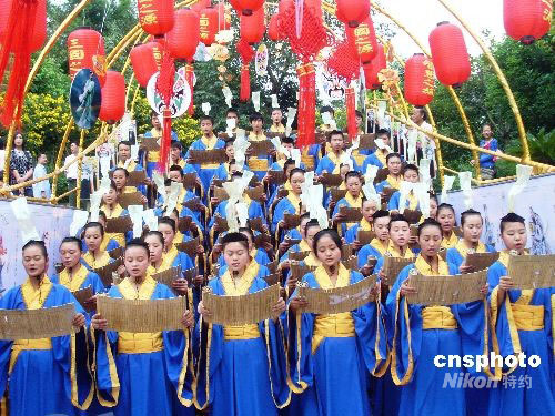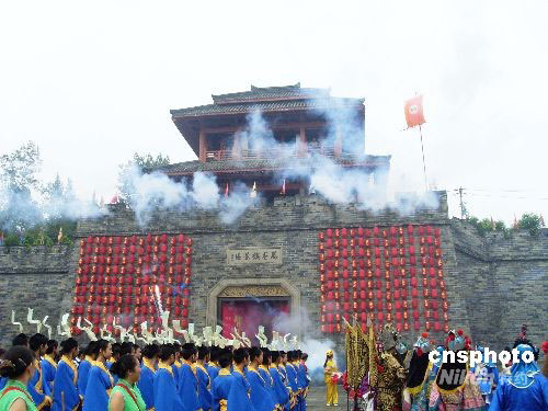 2008年9月27日,四川•南充第二屆三國文化節在南充萬卷樓景區隆重開幕。三國文化節以豐富多彩的文化活動,充分展示南充“三國文化之源”的深厚內涵與璀璨的文化特色。中新社發 陳宏 攝