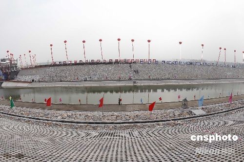 9月28日,南水北調中線京石段應急供水工程(以下簡稱京石段工程)建成通水儀式在河北省和北京市交界的北拒馬河暗渠工程現場舉行。河北省崗南、黃壁莊兩水庫的水,經南水北調中線京石段工程抵達北京,這標志著南水北調工程建設取得階段性成果,中線京石段工程開始運行并發揮效益。中新社發 杜洋 攝