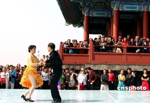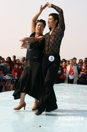 10月7日是一年一度的重陽節(jié),閱江樓杯“小拉舞”精英賽總決賽在南京閱江樓景區(qū)舉行,通過預(yù)賽的20對(duì)中老年小拉舞愛好者在決賽中翩翩起舞,歡度重陽節(jié)的到來。中新社發(fā) 阿董 攝