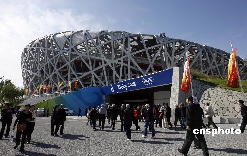 北京國(guó)家體育場(chǎng)“鳥巢”和國(guó)家游泳中心“水立方”成為繼天安門、故宮、長(zhǎng)城等著名景點(diǎn)后又一旅游熱點(diǎn)。10月11日,北京陽光明媚,無數(shù)人攜帶家眷、伴結(jié)朋友漫步奧林匹克公園,近距離欣賞鳥巢魅力。中新社發(fā) 王麗南 攝