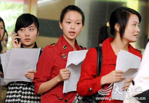 10月26日,首次來江西招聘國際航空小姐的新加坡國際航空互聯會對400余名女孩進行了入圍面試。記者在現場看到,進入面試的應聘者必須用英文填寫個人簡歷,在面試過程中,要全程用英語交流。一位來自南昌航空大學的大四學生告訴記者,她們此次有6名同學前來面試,但進入復試的只有兩人,其余四人都卡在英語關和反應能力上。
