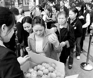 11月2日上午,成都大型賣場紛紛開門營業(yè)時,由省農(nóng)業(yè)廳等單位共同組織的“萬人免費(fèi)品嘗柑橘活動”也正式在各家賣場啟動。在春熙路一大型賣場內(nèi),當(dāng)市民們爭相走向免費(fèi)品嘗點(diǎn)時,農(nóng)業(yè)部副部長陳曉華、副省長張作哈、省農(nóng)業(yè)廳廳長任永昌等領(lǐng)導(dǎo)也走到了柑橘品嘗點(diǎn)前,細(xì)細(xì)品嘗起這些剛從果農(nóng)柑橘園子中摘下的新鮮柑橘。在他們的帶領(lǐng)下,原本購物的市民也紛紛停下腳步,走到了品嘗點(diǎn)品嘗柑橘。“目前市場上的橘子,包括今天免費(fèi)品嘗的20噸橘子都是經(jīng)過了相關(guān)部門檢驗(yàn)的,絕對沒有問題,而且品質(zhì)很好。”省農(nóng)業(yè)廳廳長任永昌表示。