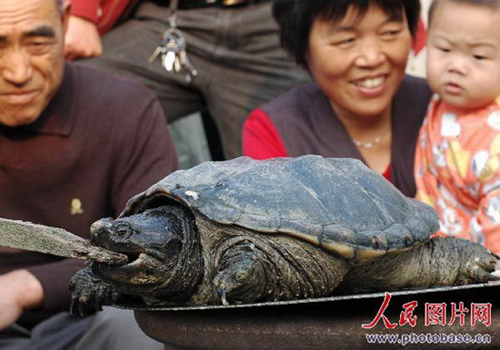 2008年11月4日,一只大“怪”龜引來眾人觀奇。這只重11.4斤的“怪”龜背部像烏龜、腹部像甲魚、尾巴又像穿山甲,是江蘇省姜堰市溱湖風景區湖南村村民孫鳳林上周在湖中扒土時挖出的。據當地水產工程師介紹初步認定,它屬一種相當稀少的大鱷龜,主要生存在南美洲一帶,其生性暴躁、殘忍、什么東西多吃,在水中所向無敵,建議不要進行人工放流。