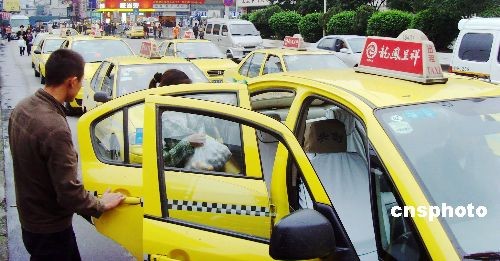 十一月五日,在重慶市菜園壩火車站附近的的士候車站,停靠著不少出租車等待市民乘坐。三日清晨,重慶主城部分出租車因受阻不能正常營運(yùn),給當(dāng)?shù)厝罕姵鲂性斐刹恍±щy。當(dāng)?shù)卣谌兆龀鼍o急部署,采取多項(xiàng)有力措施,積極解決出租車停運(yùn)事件。目前,重慶主城區(qū)八千余輛出租車已全面恢復(fù)營運(yùn)。