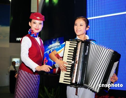 第七次參加珠海航展的南航,為本屆展會帶來了更多新鮮元素:美麗優雅的“奧運空姐”,在南航展區一亮相就博得了滿堂喝彩。中新社發 邵富強 攝