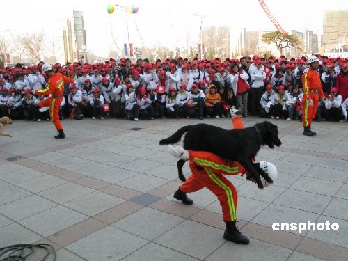 11月9日上午,以“關注消防,珍愛生命,共享平安”為主題的遼寧省沈陽市“消防志愿者行動”啟動儀式在沈陽師范大學文體館隆重舉行。省、市兩級公安消防、共青團、教育、民政、文化、衛生、婦聯、廣電、新聞出版、安全生產、工會、紅十字會等13個行業部門及4000多名消防志愿者參加啟動儀式。啟動儀式結束后,4000名消防志愿者現場進行了滅火和疏散逃生演練,并展開了志愿者消防宣傳互動、消防知識問答、滅火演練、搜救犬表演等異彩紛呈的宣傳活動。 中新社發 趙敬東 攝