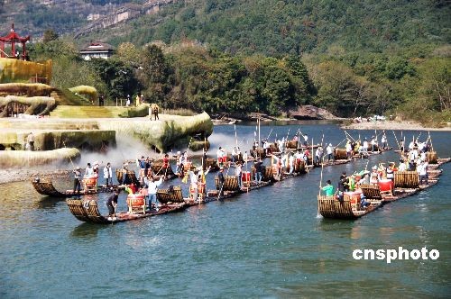 2008年11月14日,福建南平武夷山,張藝謀奧運會后復出開工第一個全新導演的“印象系列”——《印象·武夷山》在武夷山國家風景區內進行舞臺合練,將于16日在武夷山旅游節上演出。據了解,在此次的“印象”系列中,張藝謀會借鑒北京奧運會的一些創意手法,給觀眾帶來新的視覺體驗和驚艷感受。中新社發 張 斌 攝