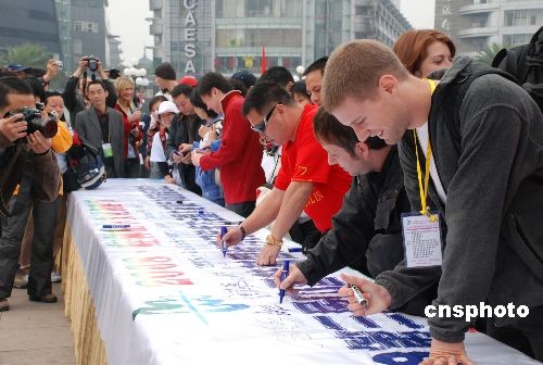 11月15日,由國際市民體育聯盟中國總部主辦的“二00八第三屆中國(桂林)國際市民徒步大會暨大桂林戶外旅游”在國際旅游名城廣西桂林市舉行,國際市民體育聯盟(IVV)奧地利主席羅伯特沃爾茲以及來自中國、美國、英國、瑞士、瑞典、德國等IVV成員國徒步愛好者參加了啟動儀式。中新社發 周利朔 攝