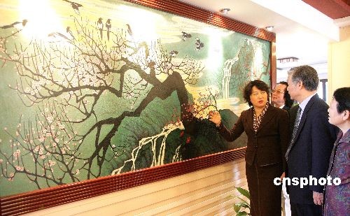 11月27日,首屆“海峽兩岸(廈門)文化產業博覽交易會”在福建廈門舉行。作為漆線雕藝術分會場,優必德柒寶齋藝術館同時拉開了“北京鳥巢漆藝匯報展”的帷幕。大型漆畫《喜鵲登枝》是優必德采用堆花、隱花、描花等綜合技法,歷時7個月經幾十道工藝精制而成,終因其神奇的中華千秋漆藝技術,成為鳥巢的主題漆畫。