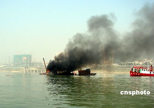 圖:廣西梧州西江江面一船只兩度爆炸