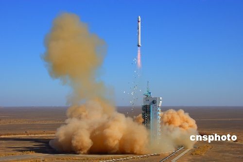 12月1日12時42分,中國在酒泉衛星發射中心用“長征二號丁”運載火箭將“遙感衛星四號”成功送入太空。中新社發 許海晗 攝