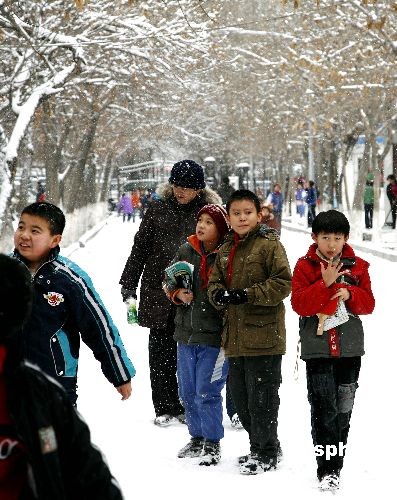 12月2日,新疆烏魯木齊迎來第二次降雪,這是今年入冬以來首場較強的冷空氣降溫并夾裹紛紛揚揚的大雪襲來,放學的兒童們嬉笑玩耍在飄揚的雪花和清新的環境之中。中新社發 馬蕙萍 攝
