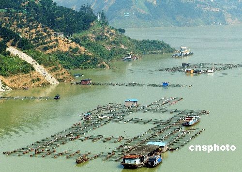 2008年12月6日,據湖北省秭歸縣政府、長江航運宜昌公安分局、三峽海事局聯合發布的通告稱,為保障船舶航行安全,禁止在三峽庫區湖北秭歸段通航水域網箱養魚,凡有礙通航安全的網箱養殖將依法強制拆除。據悉,三峽蓄水后,長江江面變寬,秭歸縣不少漁民在長江邊從事網箱養殖,但一些漁民將網箱養殖區域設置在船舶的待閘錨地和船舶通航區域內,影響了船舶正常行駛;僅秭歸縣茅坪鎮庫區境內就有5個錨地、1861口網箱對通航造成影響,其中最嚴重的是蘭陵溪水域。中新社發 劉君鳳 攝