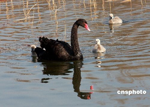 12月14日,北京圓明園,一對(duì)黑天鵝夫婦帶著8只未滿月的天鵝寶寶在享受著北京冬日溫暖的陽(yáng)光。據(jù)介紹,8只小黑天鵝是11月22日出生。中新社發(fā) 鄭雄增 攝