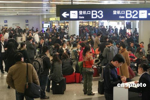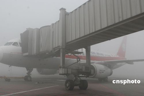 成都雙流國際機場12月16日再度遭受濃霧天氣襲擊,機場被迫關閉3個多小時,直接造成109個進出港航班延誤,其中出港74個,進港35個,并使18個出港航班被迫取消,導致近1萬名出港旅客受阻于機場,不能按時飛往目的地。雙流機場及時向全場發布了二級預警信號。中新社發 呂俊明 攝