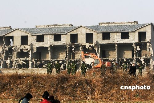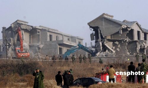 12月17日上午,備受社會關注的河南洛陽龍門石窟西山違法別墅群被當地政府強制拆除。近日,國內部分媒體公開報道了河南洛陽龍門石窟所在的龍門西山出現29棟違法別墅群的情況。洛陽市委、市政府高度重視,立即成立調查組迅速查處,認定該別墅群屬違法建筑物,依法予以強制拆除。中新社發 張曉理 攝