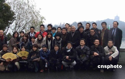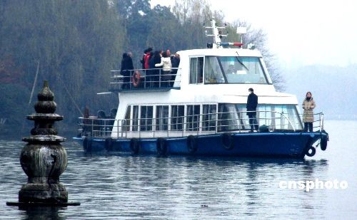 12月24日上午,日本青少年友好使者代表團(tuán)一行38人搭船游覽杭州西湖,在“三潭映月”合影。新田理惠小姐表示:“早就聽說西湖很美,果然很讓我驚喜。雖然不是晴天,但是現(xiàn)在的西湖讓人覺得特別寧靜內(nèi)斂。”中新社發(fā) 周翌 攝