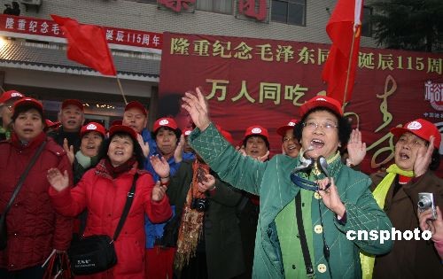 12月26日,一支來自北京的旅游團隊在毛澤東家鄉韶山村高歌《東方紅》。當天是毛澤東誕辰115周年,人們以這種方式抒發對毛主席的敬仰和懷念之情。中新社發 鄧霞 攝