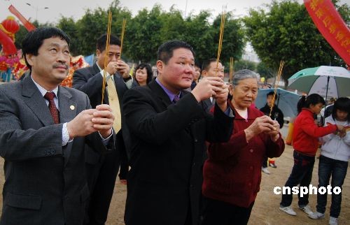 十二月二十七日,臺灣鹿港天后宮敬贈媽祖神像揭彩儀式在福建泉州霞洲媽祖宮舉行。由臺灣鹿港天后宮專門敬贈的一尊高五米、底座三米的媽祖神像,放置在霞洲媽祖宮外,供善男信女朝拜。霞洲媽祖宮迄今有近四百年的歷史,在政府撥款三百七十萬元人民幣重建媽祖宮的過程中,得到了眾多海外僑胞特別是臺灣同胞的慷慨解囊。中新社發(fā) 傅丹丹 攝