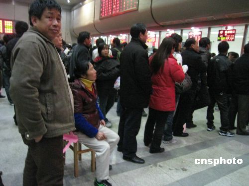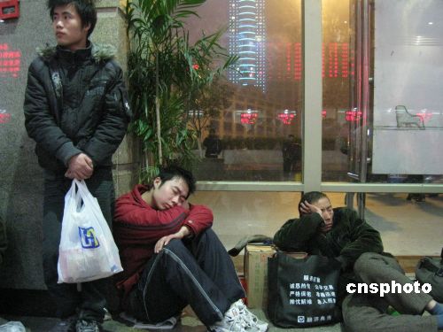 運(yùn)輸部門近日表示,2009年春運(yùn)將從一月十一日開始至二月十九日結(jié)束。據(jù)預(yù)測,在40天里浙江省將有近1.946億的旅客通過各種交通方式出行。受金融危機(jī)的影響,目前已經(jīng)無工可做的打工者選擇了提前返鄉(xiāng),以致浙江發(fā)往湘、鄂、黔、贛等地的車次出現(xiàn)“一票難求”的現(xiàn)象。中新社發(fā) 孫寧亞 攝