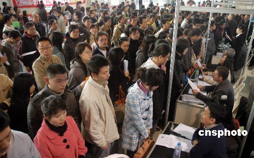 1月17日,福建省2009年春季大中專畢業生供需見面、雙向選擇大會在福州金山展覽城舉行。本次大會吸引了550多家用人單位前來招聘,為求職者提供近兩萬多個就業崗位,幾萬名大中專畢業生前來應聘。大會為公益性活動,對參會單位和求職人員均實行免費,參會的對象包括各設區市人事局,省直和中央在閩單位,各類企事業單位,各類人才中介機構,2009年大中專畢業生、畢業研究生及往屆待就業畢業生。中新社發 張 斌 攝
