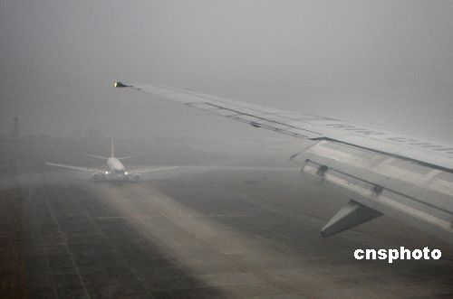 1月18日12時30分,一架滿載回家過年乘客的中國國際航空公司從北京飛往成都的波音738客機,在成都機場上空盤旋五十分鐘后方降落在依舊被濃霧籠罩的成都機場跑道。當天,四川省的川西平原遭遇今冬極為罕見的超級濃霧天氣,成都機場的航班大面積延誤,午后方部分開放。中新社發 任晨鳴 攝
