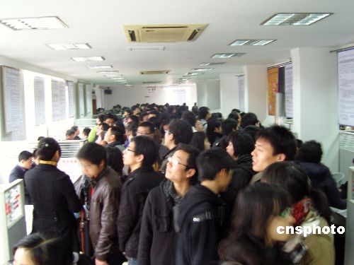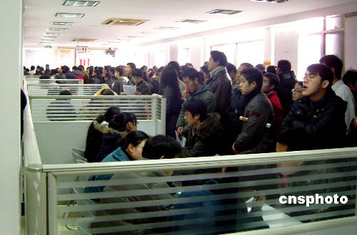 2月3日,杭州新年首場招聘會開場,小小的招聘會廳內擠滿渴望就業的人們。目前就業形勢嚴峻,供仍遠遠大于求。中新社發 王磊 攝