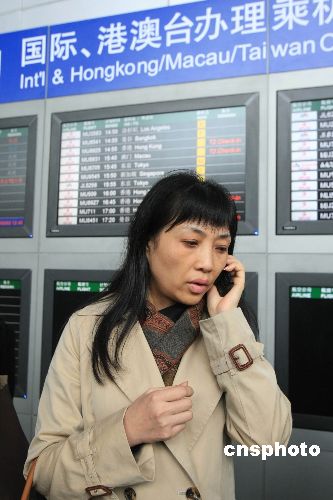 2月3日下午,在美國遭遇車禍事故的首批上海游客家屬親友團,從浦東國際機場啟程飛往美國處理車禍遇難者善后事宜,上海東湖國旅相關負責人陪同前往。圖為東湖國旅人員邊女士在浦東國際機場。中新社發(fā) 湯彥俊 攝