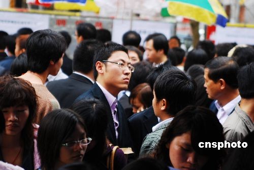 2月4日,2009年春節過后,海南省人才交流市場的首場人才交流會在?谌瞬沤涣髦行呐e行。共有140多家用人單位進場招聘,提供近3000個工作崗位。截止記者發稿時統計,已經有六千多名求職者到招聘會現場。中新社發 周運杰 攝
