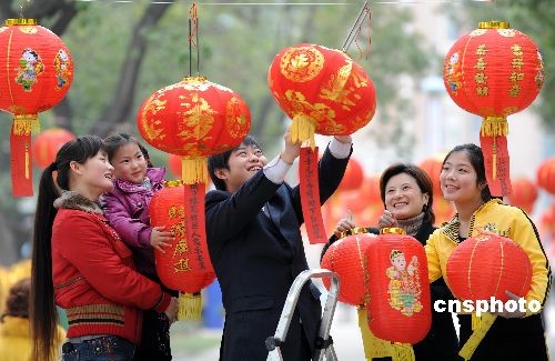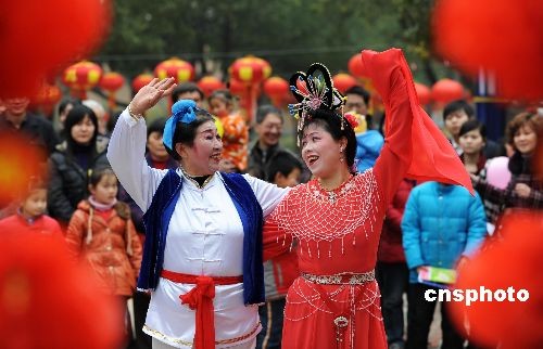 2月8日下午,安徽合肥市瑤海區綠苑社居委組織轄區居民齊聚一堂,共慶佳節。家家戶戶自發地送出了寫有節日祝福語的元宵燈籠掛在社區里,多才多藝的社區群眾還拿出了自己的拿手文藝節目,共同上演了一臺精彩的社區元宵喜樂會。中新社發 解琛 攝