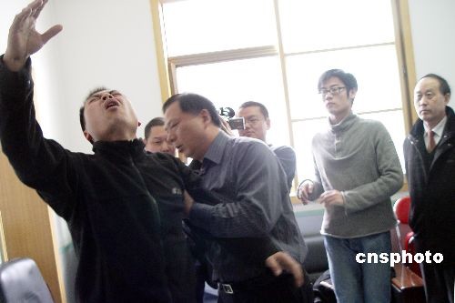 2月28日,年齡超過五十歲的企業(yè)人士蔡玉建,在河南鄭州演示“少林點穴功”,醫(yī)學(xué)專家現(xiàn)場觀看后稱,這不是什么神秘的東西,屬于人體打擊正常反應(yīng)。大約一周前,經(jīng)營生物保健產(chǎn)品的蔡玉建被當(dāng)?shù)貓蠹埰爻錾瞄L點穴,引起媒體和民眾的廣泛關(guān)注。28日,蔡玉建和其弟子釋延力的表演在鄭州市一家醫(yī)院上演,觀者有媒體、醫(yī)護(hù)人員和專家等。中新社發(fā) 李志全 攝
