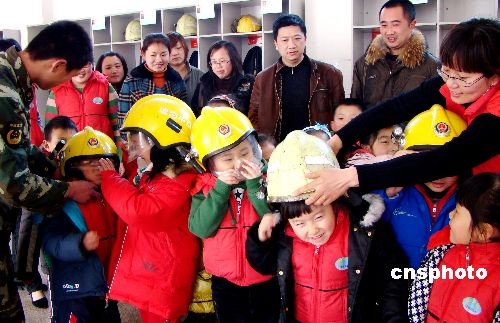 3月13日,江蘇連云港市公安連云消防大隊舉辦了“警營對外開放日”活動,邀請老師、家長、小朋友前來參觀。小朋友們參觀了消防設施,聽消防隊員講解消防知識,體驗著裝,試戴呼吸器,親身感受警察風采。警民共同迎接即將到來的“3·14國際警察日”。中新社發 lyg王春 攝