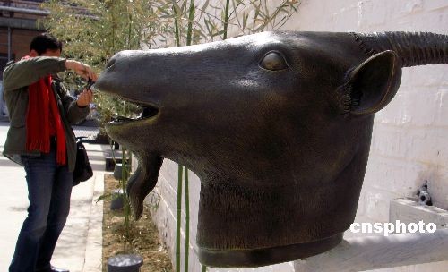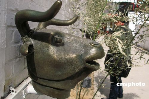 3月16日,北京“798”文化藝術(shù)產(chǎn)業(yè)創(chuàng)意區(qū)展出圓明園十二生肖獸首仿制品。中新社發(fā) 鄒憲 攝
