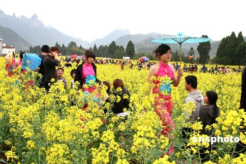 3月22日,浙江省仙居縣10萬畝油菜花田陸續開放,成片的金黃色油菜花吸引了眾多中外游客踏春賞花。中新社發 金煒民 攝