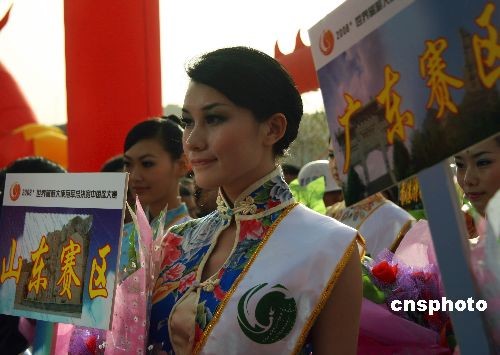 12月1日上午,2008世界旅游大使冠軍總決賽中國(guó)區(qū)決賽在河北省正定縣開幕,來自全國(guó)30個(gè)省市和地區(qū)分賽區(qū)的60名佳麗將在這里角逐中國(guó)區(qū)大賽冠軍。在北方10攝氏度左右低溫下,選手們以旗袍出場(chǎng),果然美麗“凍”人。中新社發(fā) 翟羽佳 攝