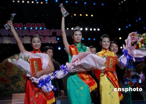 12月20日,備受矚目的2008中國小姐風采大賽廣西賽區決賽在南寧落下帷幕。經過民族服裝及自我介紹、活力裝展示、泳裝展示等比賽環節的比拼,最終評選出冠、亞、季軍選手,冠軍由黃依婷獲得,亞軍、季軍分別由戴冰、梁春獲得。中新社發 彭寰 攝