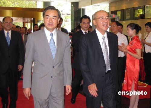 中國國民黨主席吳伯雄率參加第五屆兩岸經(jīng)貿(mào)文化論壇的中國國民黨代表團(tuán),7月10日下午乘臺(tái)北直飛的包機(jī)抵達(dá)湖南長沙黃花機(jī)場。中共中央臺(tái)辦主任王毅等到機(jī)場歡迎。第五屆兩岸經(jīng)貿(mào)文化論壇將于7月11日至12日在長沙舉行,論壇的主題是兩岸文教交流。中國國民黨、親民黨、新黨、無黨團(tuán)結(jié)聯(lián)盟、部分民進(jìn)黨人士,和眾多臺(tái)灣文化、教育、宗教屆和經(jīng)濟(jì)界代表與會(huì)。中新社發(fā) 傅煜 攝