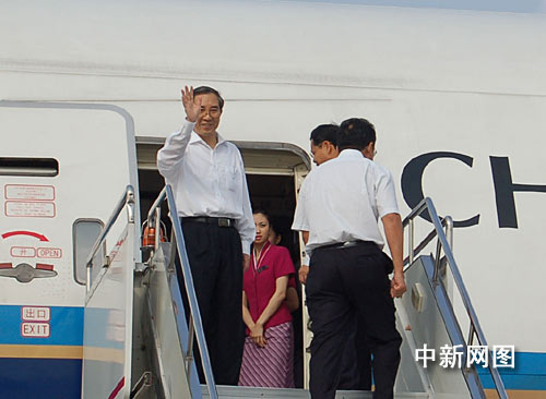 5月21日上午,廣西壯族自治區主席馬飚率領廣西經貿文化代表團乘坐包機從廣西南寧機場起飛,開始飛赴臺灣,廣西由此成為中國大陸各省、自治區、直轄市中第一個由省長級官員率團赴臺進行經貿文化交流的省份,此行也成為海峽兩岸交流史上的新突破。 馬飚率團此行赴臺是參加“兩岸產業高峰會議——2009年桂臺經貿合作論壇”,廣西經貿文化代表團人數多達1000余人,這也是大陸赴臺人數最多的參訪團。劉萬強 攝