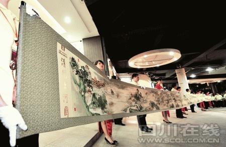 經(jīng)過37位設(shè)計師1年半時間的研發(fā),18位專業(yè)高級繡師歷時180多天、巧奪天工的繡制,長22米的《清明上河圖》十字繡,昨(30日)晚在成都首次公開亮相。這幅特殊的十字繡總共使用了116505米繡線,共計2032611針,重達(dá)20600克,是目前世界上最長的十字繡藝術(shù)品。18位技師從2008年7月20日起開始繡制,至2009年1月20日完工,共繡制人物814人,動物83匹,船只29艘,房屋樓宇30多棟,車13輛,轎8頂,橋17座,樹木180棵,人物往來衣著不同,神情各異,栩栩如生。作品將在第二屆非物質(zhì)文化遺產(chǎn)節(jié)上正式展出。(譚曦 攝)