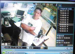 發現了小偷蹤跡的工作人員急忙報警,為了保存證據,技術人員還在民警的要求下將錄像進行了下載,并以文件的形式保存在了電腦中。從監控錄像中可以看出,這名男子的年齡在40歲上下,身體較胖。當時他身穿一件寬大的T恤衫和一條卡其色的短褲。剛開始時,男子是以購買攝像頭的名義跟銷售人員進行咨詢,而且還查看了一款售貨員推薦的機型。