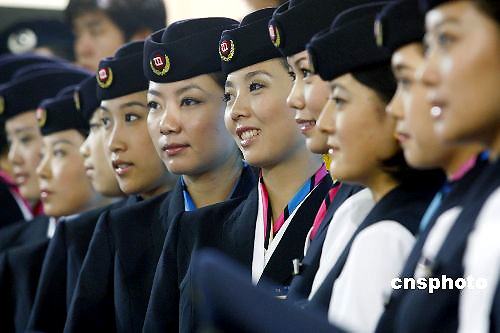 7月8日,北京地鐵4號線員工制服發(fā)布儀式在4號線中關村站舉行。此次發(fā)布的制服包括運營人員制服、維修人員工服、保安制服三大類。4號線9月下旬試運營時,此批制服將正式與乘客見面。4號線運營人員制服分為夏裝與冬裝兩個系列,以藏藍色為主色調(diào)。值得一提的是,女裝上衣與馬甲領型均采用隱形西服領,女裝襯衫采用了中式服裝的立領,突出中式元素,搭配絲巾,使著裝員工顯得更為活潑靚麗。中新社發(fā) 鄭雄增 攝
