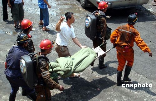 貴州晴隆新橋煤礦“6.17”透水事故在全體搶險救援人員的艱苦努力、日夜奮戰下,歷經25天、604小時的搶險救援,取得突破性進展,2009年7月12日12時,在礦井上山巷與平巷交叉處成功營救出王圈杰、王礦偉、趙衛星3名被困礦工,他們均為河南汝陽人,營救出井時,意識較清醒,三人創造了604小時的生命奇跡,在場的全體搶險救援人員都為他們頑強的生命所感動。目前,救援指揮部醫護人員正在對他們進行身體檢查,并采取相應的醫療措施對他們進行醫療救護,據觀察,生命體征基本平穩。同時,搶險救援人員正在井下緊急搜救其他被困礦工。中新社發 彭年 攝