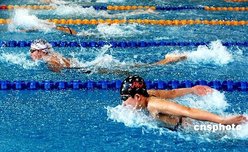 6月25日,為期五天的第十一屆全運會游泳預選賽暨2009年全國青年游泳錦標賽落下帷幕。本次比賽為第十一屆全運會游泳決賽的資格賽,分別在天津和大連兩個賽區舉行,達標運動員取得了將于今年十月份舉行的全運會游泳決賽的資格。天津賽區有江蘇、浙江、安徽、福建、廣東等14支代表隊的252名選手報名參賽;大連賽區有北京、遼寧、上海、貴州、解放軍等12支代表隊的314名選手報名參賽。中新社發 劉德斌 攝