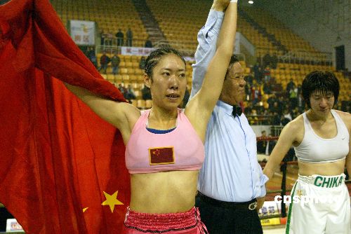 11月9日,由國家體育總局拳跆運動管理中心,PABA泛亞洲拳擊協會,CPBO中國職業拳擊機構主辦的WBA PABA女子次輕量級拳王爭霸賽在遼寧丹東舉行。丹東籍女拳手高麗君對決日本女拳手水谷知佳,以點數獲勝,奪得PABA女子次輕量級金腰帶,成為亞洲次輕量級女拳王。中新社發 陳浩浩 攝