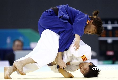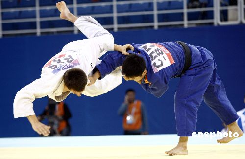 十一月十六日,“好運北京”2007年北京國際柔道公開賽在北京科技大學體育館進行,比賽分為男子八十一公斤級和女子六十三公斤級。中新社發 盛佳鵬 攝